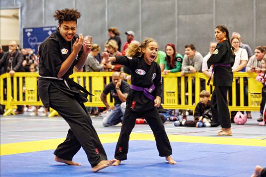 Honderden kinderen in een judopak met een band om hun middel banjeren door de zaal. De kleur van de band bepaalt de sterkte, van blauw tot zwart. Ze praten met elkaar, ongeacht de nationaliteit. Allerlei talen hoor je in de zaal. Ieren, Spanjaarden, Fransen, Engelsen en Portugezen verenigen zich voor het eerst in de historie in Utrecht voor een EK, dankzij werk van organisator Romano Michielsen, eigenaar van een kenposchool in Utrecht. Het tekent de gemoedelijkheid van kenpo. Een kleine sport, met een paar honderd beoefenaars in Nederland.